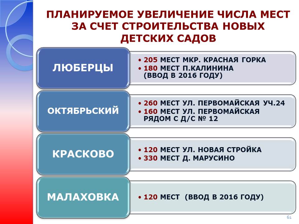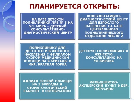 - открытие новых медицинских объектов: