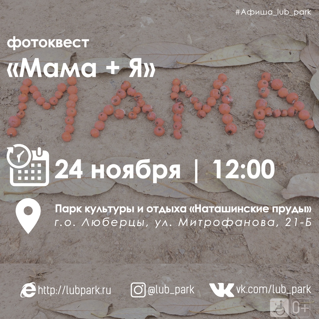 24 ноября в парке культуры и отдыха “Наташинские пруды” пройдет фотоквест “Мама + Я”, посвященный Дню матери.