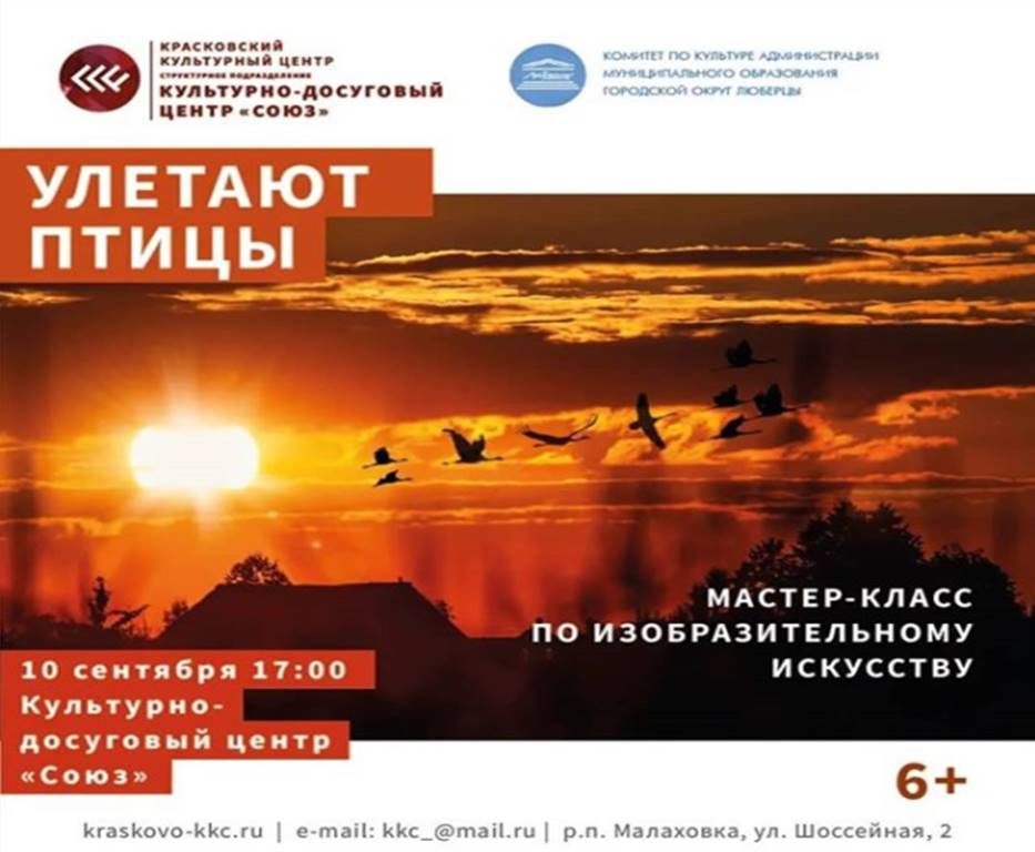 В четверг,10 сентября, в 17:00 культурно-досуговый центр «Союз» приглашает люберчан на мастер-класс по рисованию «Улетают птицы».