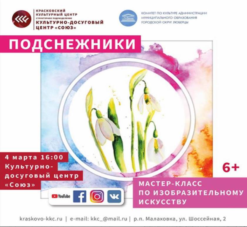 В четверг, 4 марта, КДЦ «Союз» приглашает люберчан на мастер-класс по изобразительному искусству «Подснежник».