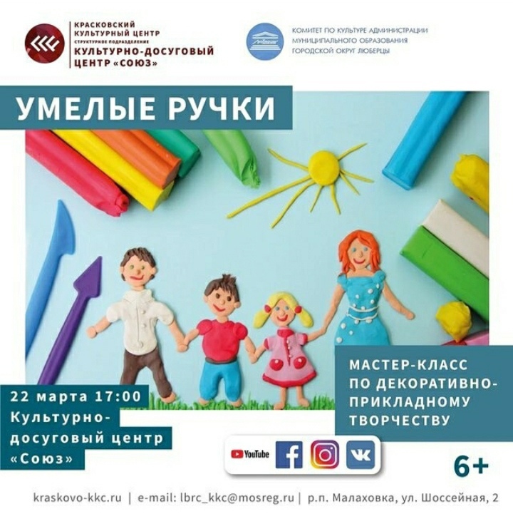 В понедельник, 22 марта, КДЦ «Союз» приглашает люберчан на мероприятия.