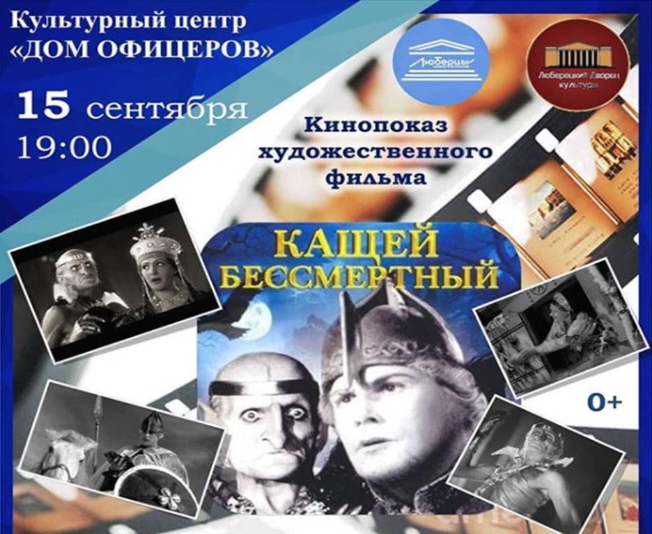 Во вторник, 15 сентября, культурный центр «Дом офицеров» приглашает люберчан на показ фильма-сказки «Кащей бессмертный». Начало в 19:00.