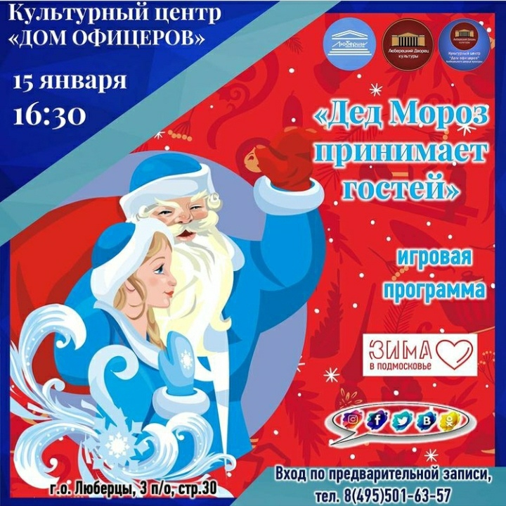 15 января в 16:30 культурный центр «Дом офицеров» приглашает юных люберчан на игровую программу «Дед Мороз принимает гостей».