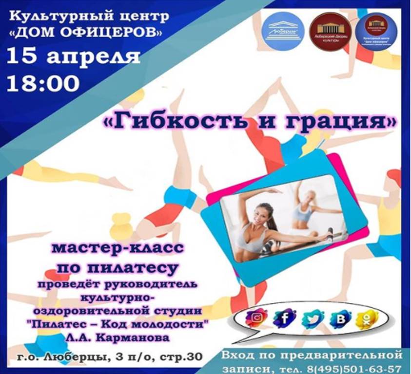 В четверг, 15 апреля, культурный центр «Дом офицеров» приглашает люберчан на мастер-класс по пилатесу «Код молодости».