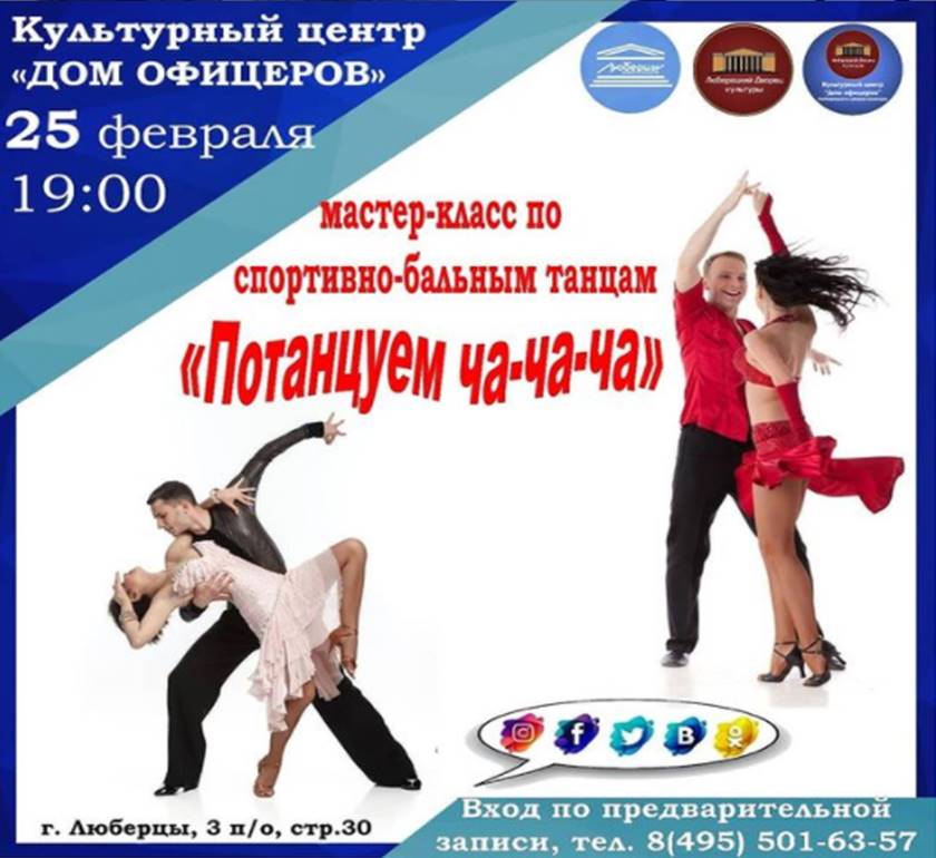 25 февраля культурный центр «Дом офицеров» приглашает люберчан на мастер-класс по спортивно-бальным танцам «Потанцуем ча-ча-ча».