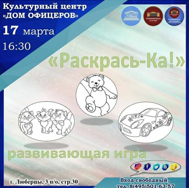 17 марта культурный центр «Дом офицеров» приглашает юных люберчан присоединиться к развивающей игре «Раскрась-Ка».