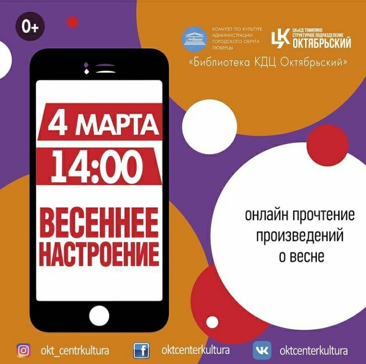 Присоединяйтесь к мероприятиям в социальной сети Инстаграм https://www.instagram.com/okt_centrkultura/ и проведите время интересно и с пользой!