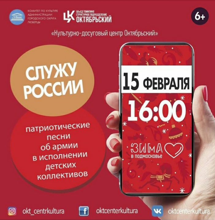В понедельник, 15 февраля, культурный центр Октябрьский приглашает люберчан на онлайн-мероприятия: