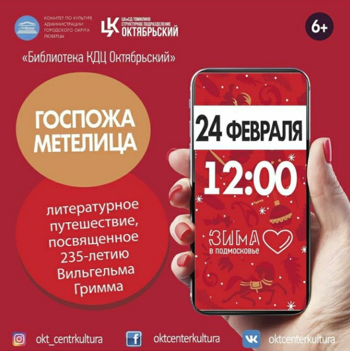 12:00 «Госпожа метелица» - литературное путешествие, посвященное 235-летию Вильгельма Гримма.