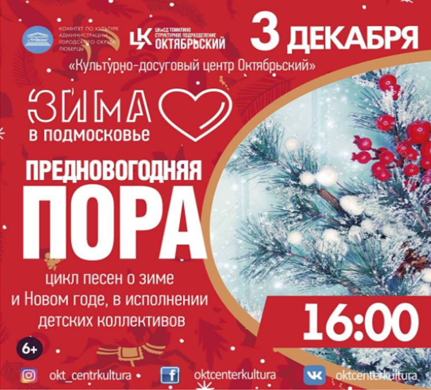 В четверг, 3 декабря, культурный центр Октябрьский приглашает люберчан на онлайн-мероприятия: