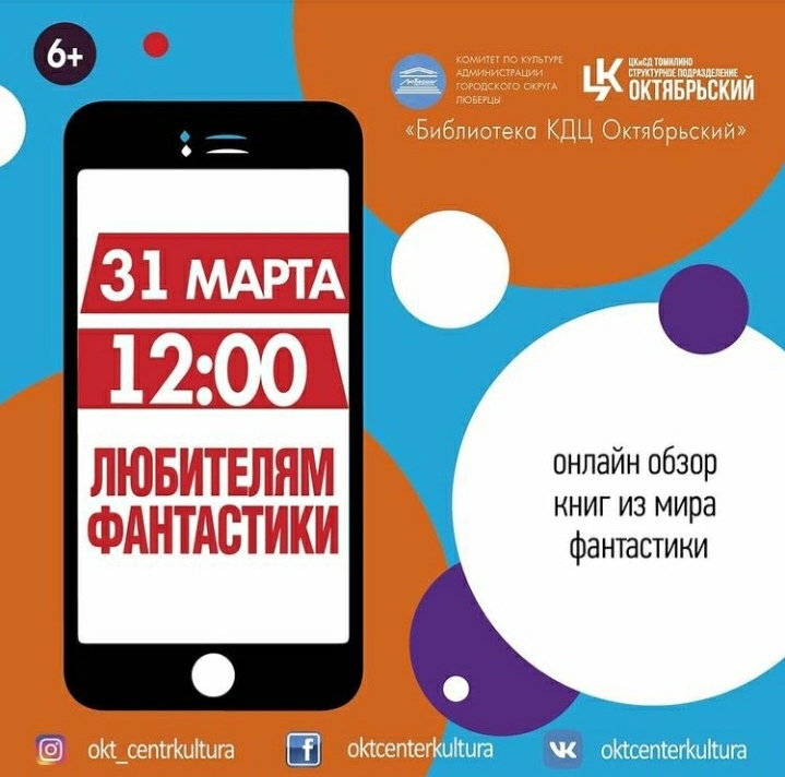 В среду, 31 марта, культурный центр Октябрьский приглашает люберчан на онлайн-мероприятия: