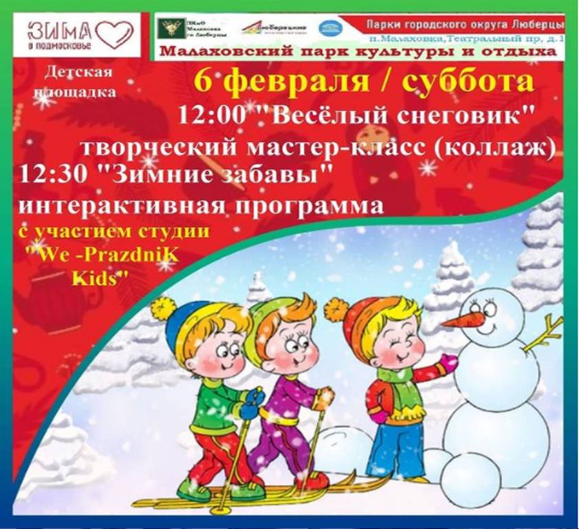 В субботу, 6 февраля, Малаховский парк культуры и отдыха приглашает юных люберчан принять участие в мастер-классах и поиграть в подвижные игры на свежем воздухе.