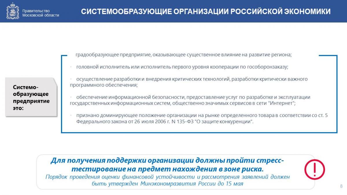Об антикризисных мерах в экономике, поддержка системообразующих предприятий