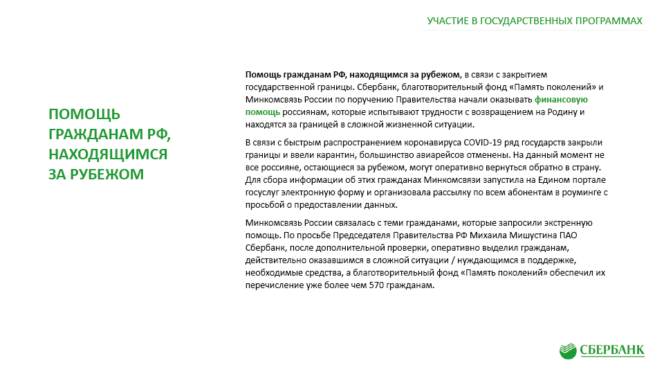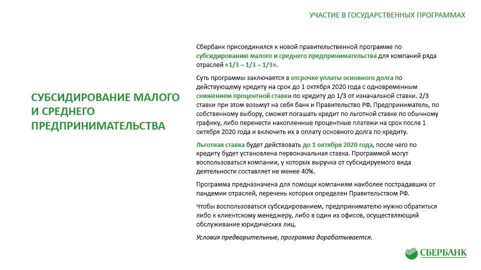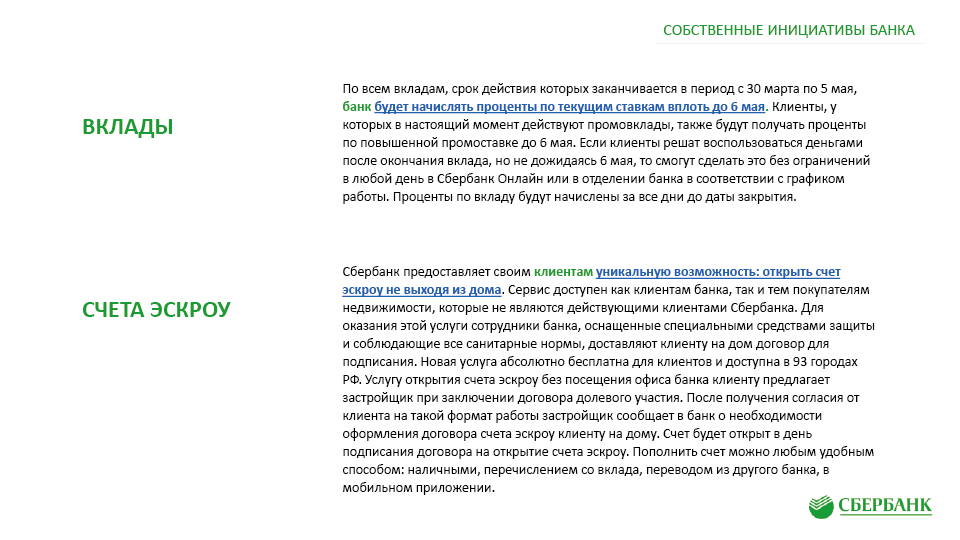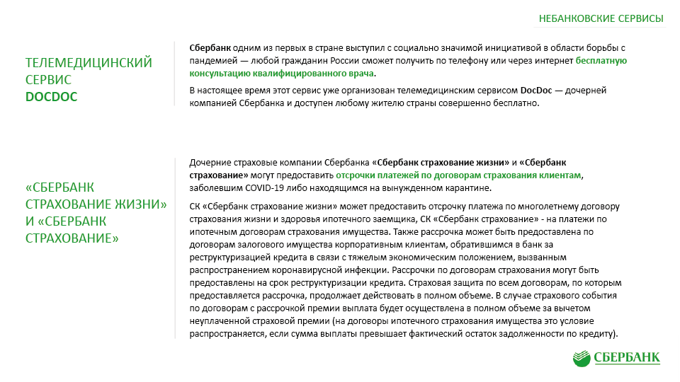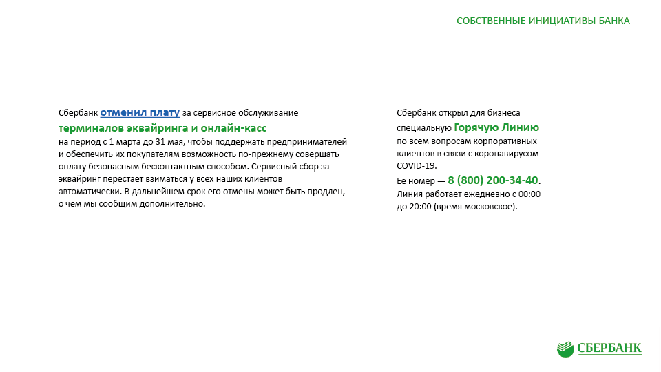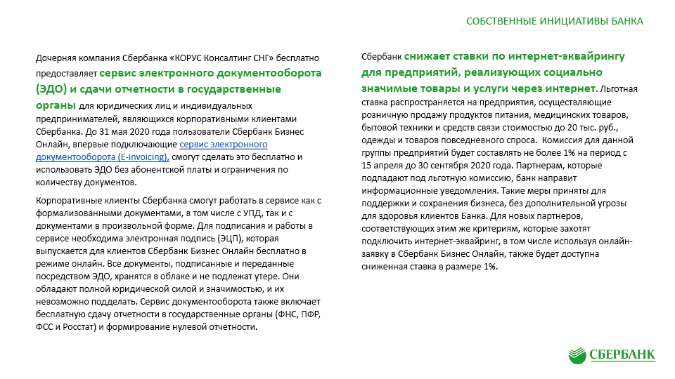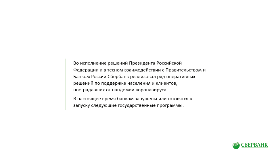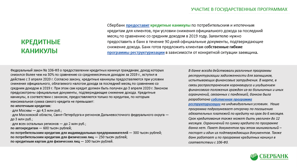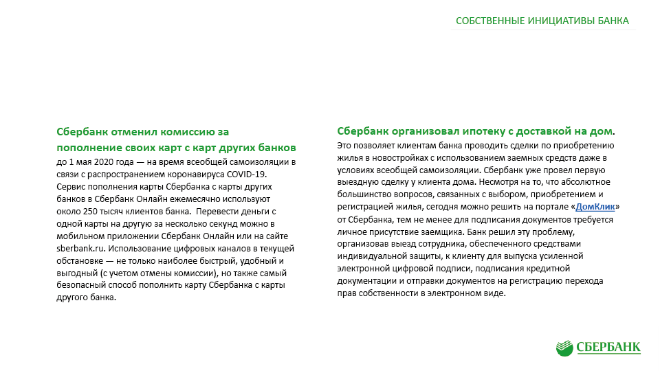 Антикризисные меры поддержки клиентов ПАО «Сбербанк» в связи с Covid-19