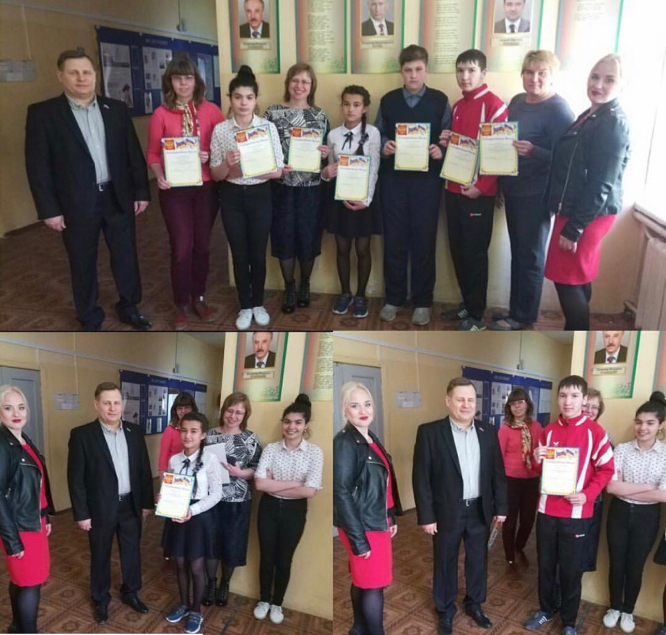 29 апреля Елена Канчели, Председатель комиссии по социальной политике, делам женщин, семьи, детей и благотворительности и социальной политике Общественной палаты городского округа Люберцы, совместно с депутатом Совета Депутатов городского округа Люберцы Дмитрием Крестининым , вручили Благодарственные письма за активную жизненную позицию и участие в проведении субботника 13 апреля 2019 года педагогам и ученикам МОУ СОШ N13 городского округа Люберцы - Воронковой Нине Борисовне, Русских Светлане Витальевне, Соловьёвой Валерии Павловне, Мамедовой Наврасте, Наврузовой Наиле, Одинаеву Умеджону, Лисову Станиславу.