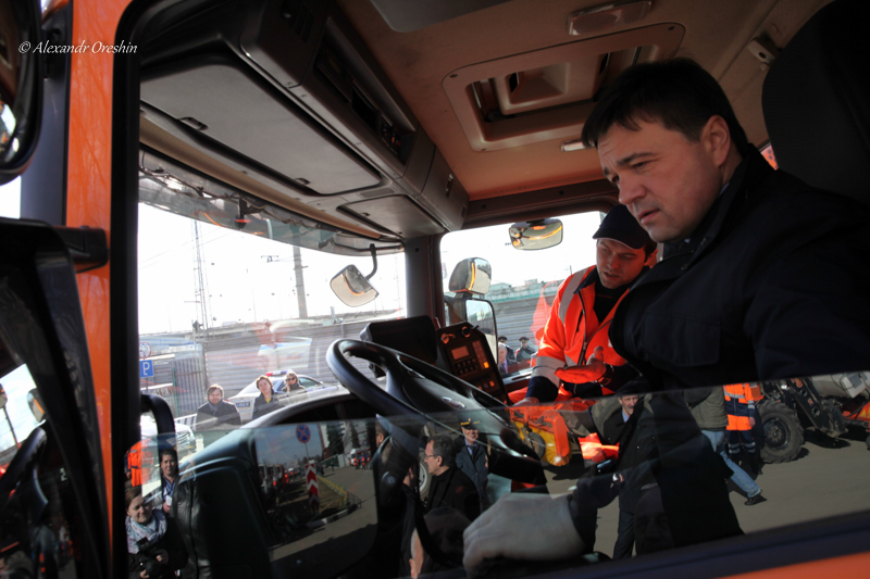 В преддверии начала сезона уборки улиц после зимы Андрей Воробьёв проинспектировал состояние спецтехники в Люберецком районе и лично сел за руль дорожного пылесоса на платформе автомобиля Skania.