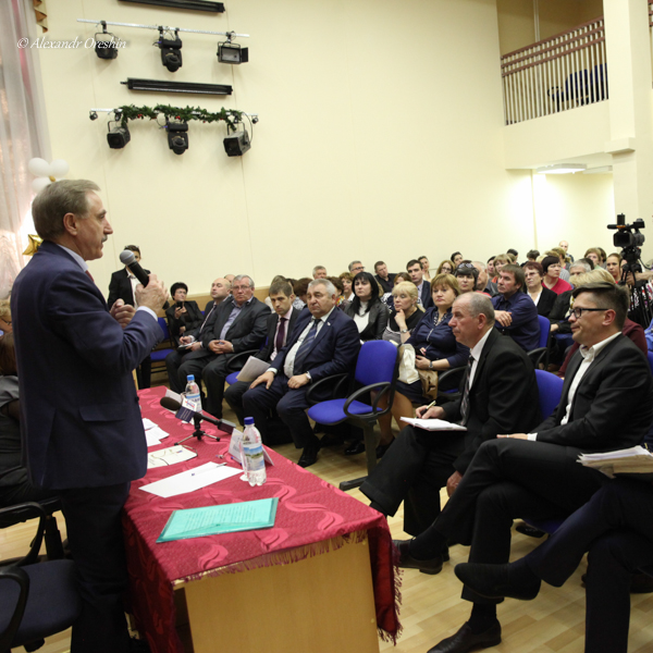 В начале своего выступления глава города и района поблагодарил инициативную группу жителей микрорайона 7-8, которая активно участвует в благоустройстве своего города и, по словам Владимира Ружицкого, «помогает властям принуждать и понуждать застройщика исправлять свои ошибки».