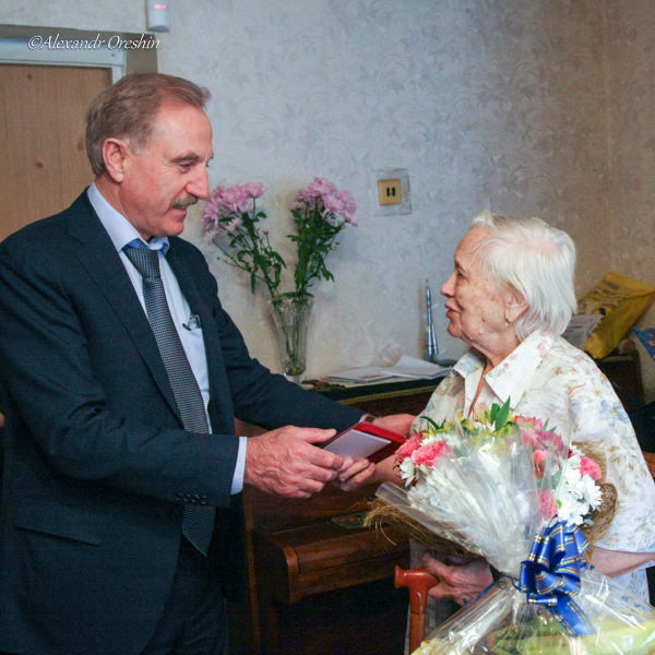Глава пришел не с пустыми руками. Он вручил имениннице подарки, самым ценным из которых стала медаль, приуроченная к 70-летию Победы в Великой Отечественной войне. Владимир Ружицкий отметил, что Антонина Васильевна человек поистине уникальной судьбы, представитель поколения героев и победителей, которое с честью прошло через испытания Великой Отечественной войны. «Мы преклоняемся перед Вашей стойкостью, силой духа и самоотверженностью.Вы – достойный пример для подражания, неравнодушный и светлый человек, гордость Люберецкого района», - сказал он.