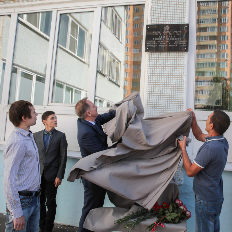 Сегодня, 1 сентября, на фасаде школы № 53 г.п. Октябрьский Люберецкого района открыли памятную доску Дамиру Гумярову, погибшему в ходе Афганской кампании. На торжественном митинге присутствовал глава Люберецкого района и города Люберцы Владимир Ружицкий, родственники павшего, члены общественных организаций, ученики школы.