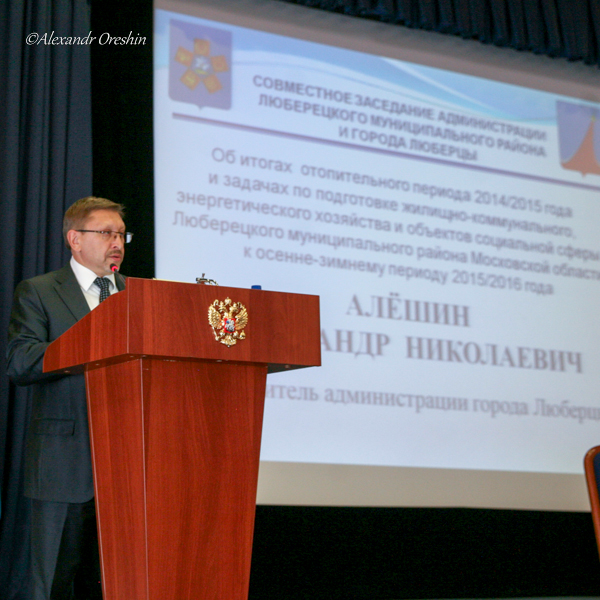 Первым доклад об отопительном периоде 2014-2015 зачитал Руководитель администрации города Люберцы, курирующий вопросы ЖКХ в Люберецком районе, Александр Алёшин. Он отметил, что важнейшей задачей органов местного самоуправления и предприятий жилищно-коммунального комплекса является обеспечение надежного функционирования объектов ЖКХ, своевременная и всесторонняя их подготовка к сезонной эксплуатации, так как от качества и полноты выполненных работ по подготовке объектов в эксплуатации в зимний период зависит его безаварийное прохождение и комфортные и безопасные условия жизни жителей.