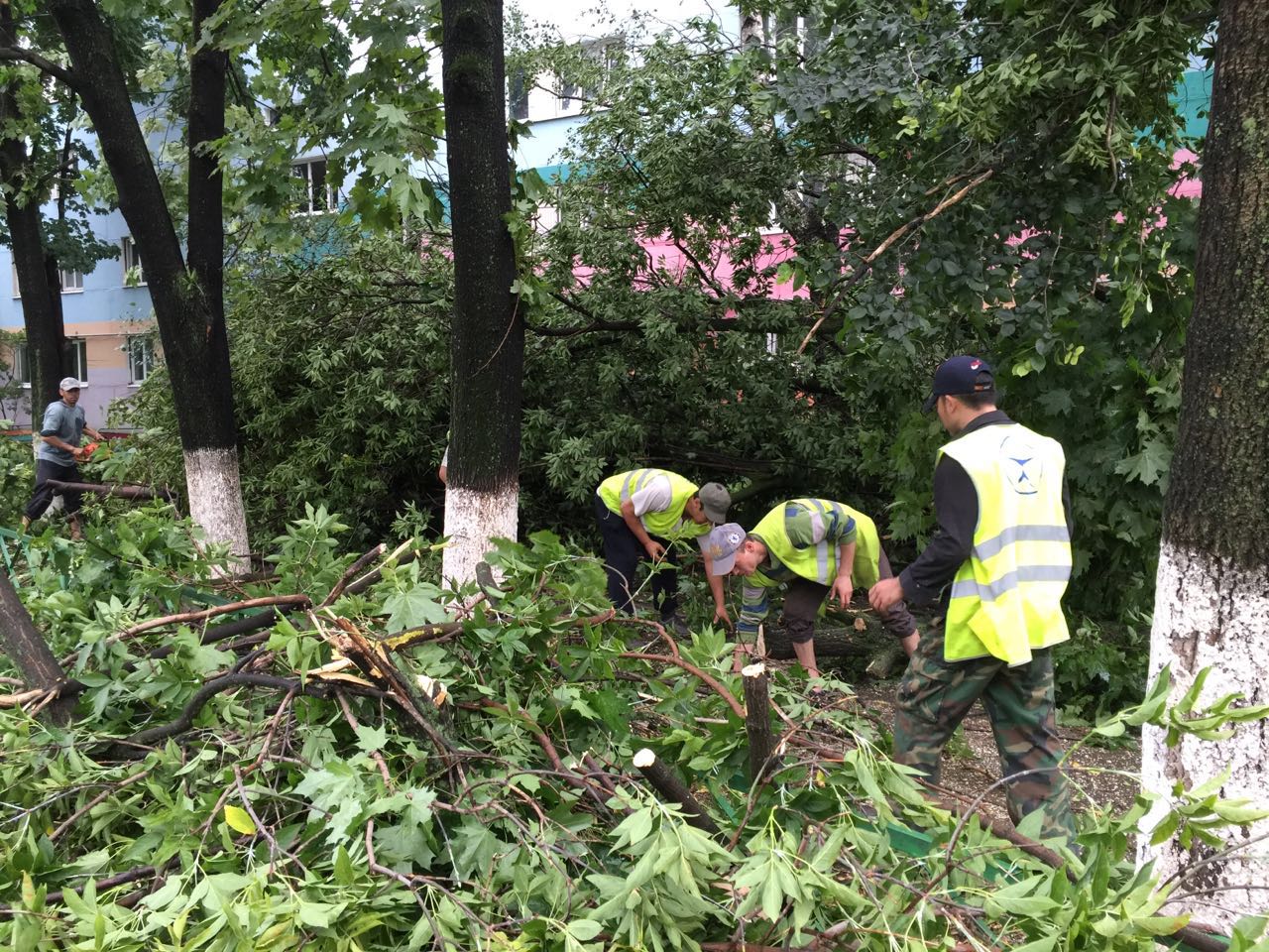 «Сейчас в ликвидации последствий урагана задействованы 12 бригад спасателей, гарнизона пожарной охраны. На улицы выведены 7 единиц техники, а также сотрудники управляющих компаний, водоканала и электросетей. Сейчас рабочие заняты распилом деревьев, упавших на линии электропередач, автомашины, подъезды и остановки общественного транспорта», - сказал Ружицкий.