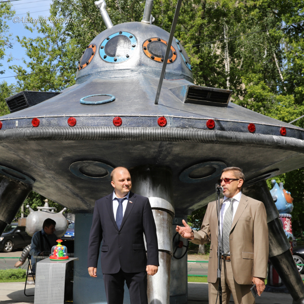 В четверг, 11 июня, в Люберцах открыли новый арт-объект. Он представляет собой композицию, состоящую из скульптуры летающей тарелки и фигурок космических пришельцев. Торжественное открытие посетил руководитель администрации города Люберцы Александр Алёшин.