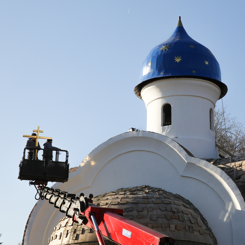 После молебна и чина освящения купол с крестом были подняты на храм, а в самой церкви прошла праздничная служба.
