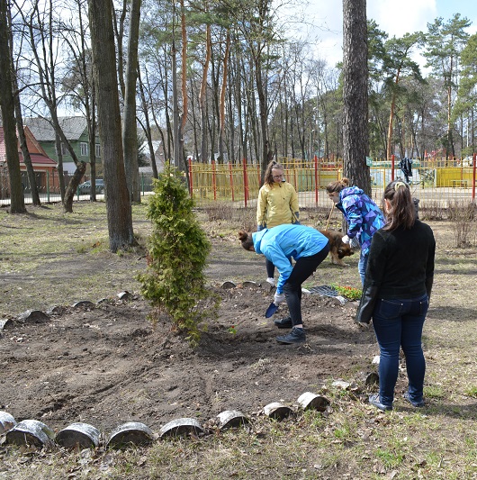 Ребята с удовольствием оформляли клумбы, создавая цветочные композиции, и слушали занимательные истории о годах славы парка, столь эмоционально рассказанные заместителем директора парка культуры и отдыха Ириной Левицкой. В общей сложности ученики посадили 24 туи, а также оформили красочными цветами две большие клумбы у входа.
