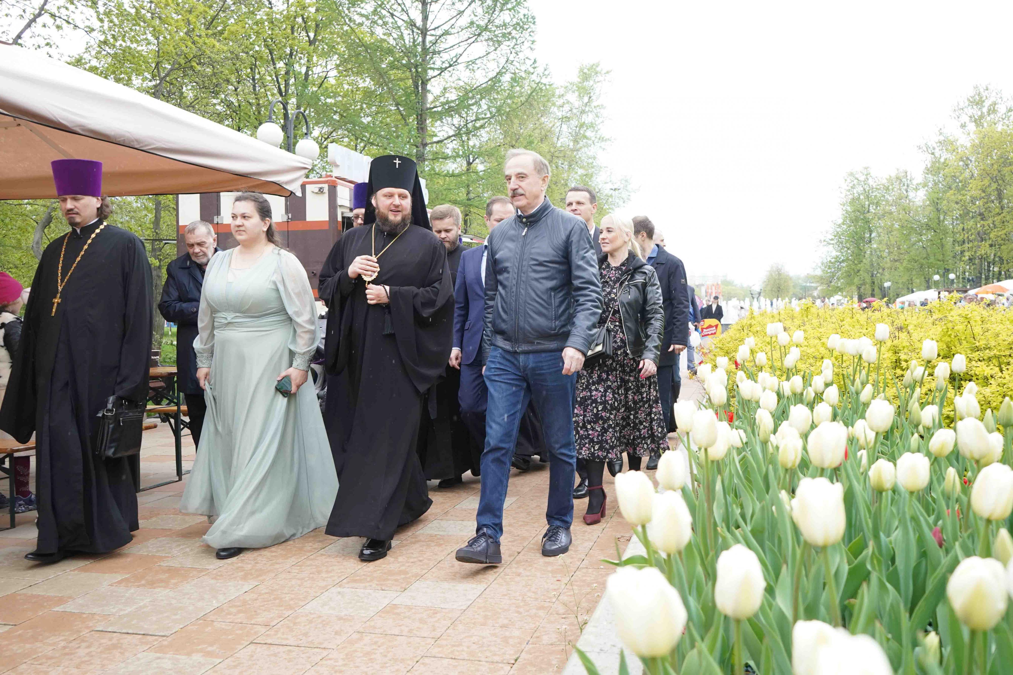 Почётные гости посетили площадки Пасхального фестиваля, среди них - историческая реконструкция, творческие мастер-классы, хоровой фестиваль, театральные постановки, народные игры.