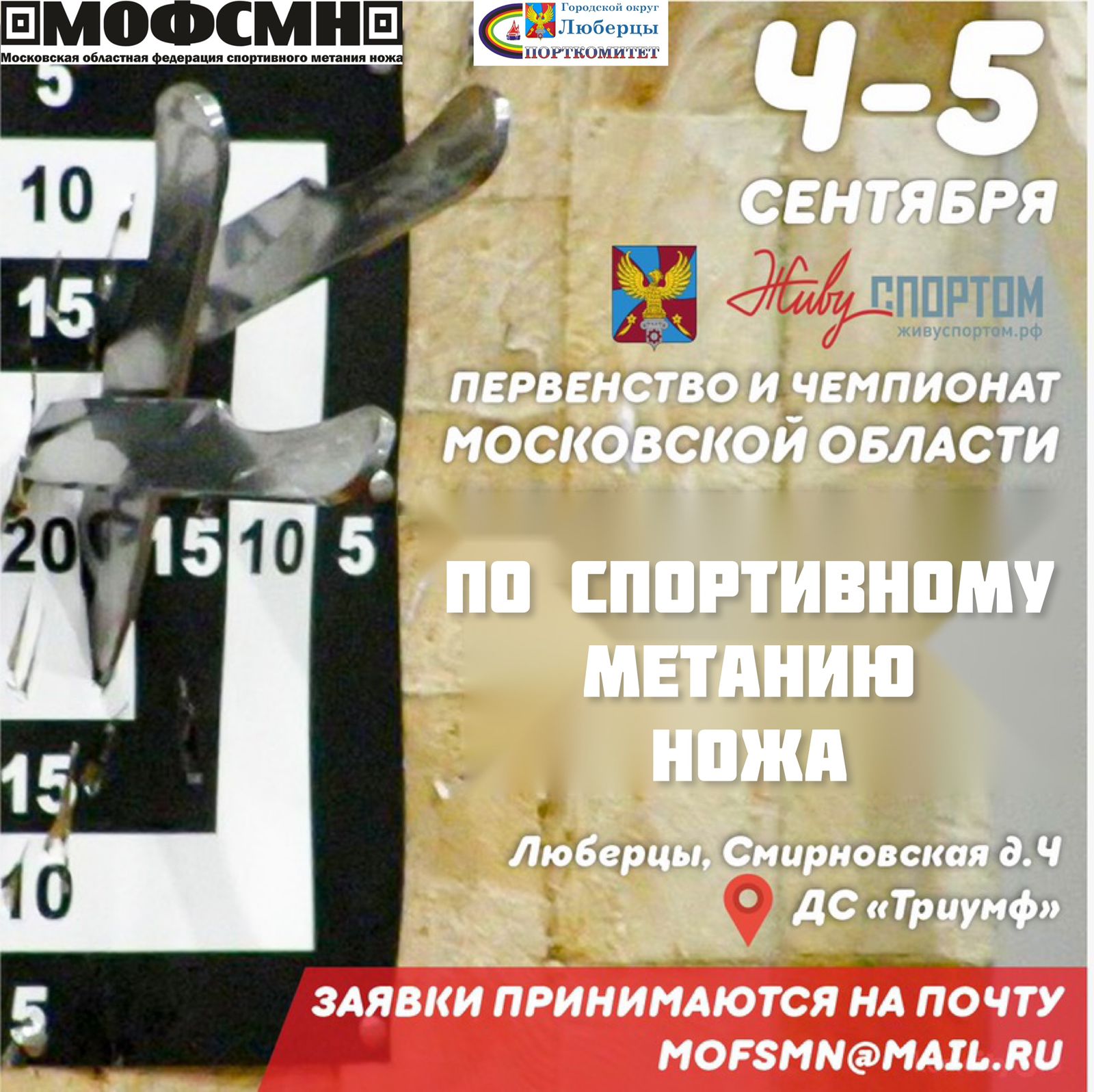 Организаторы соревнований - Московская областная федерация спортивного метания ножа, комитет по физической культуре и спорту городского округа Люберцы.