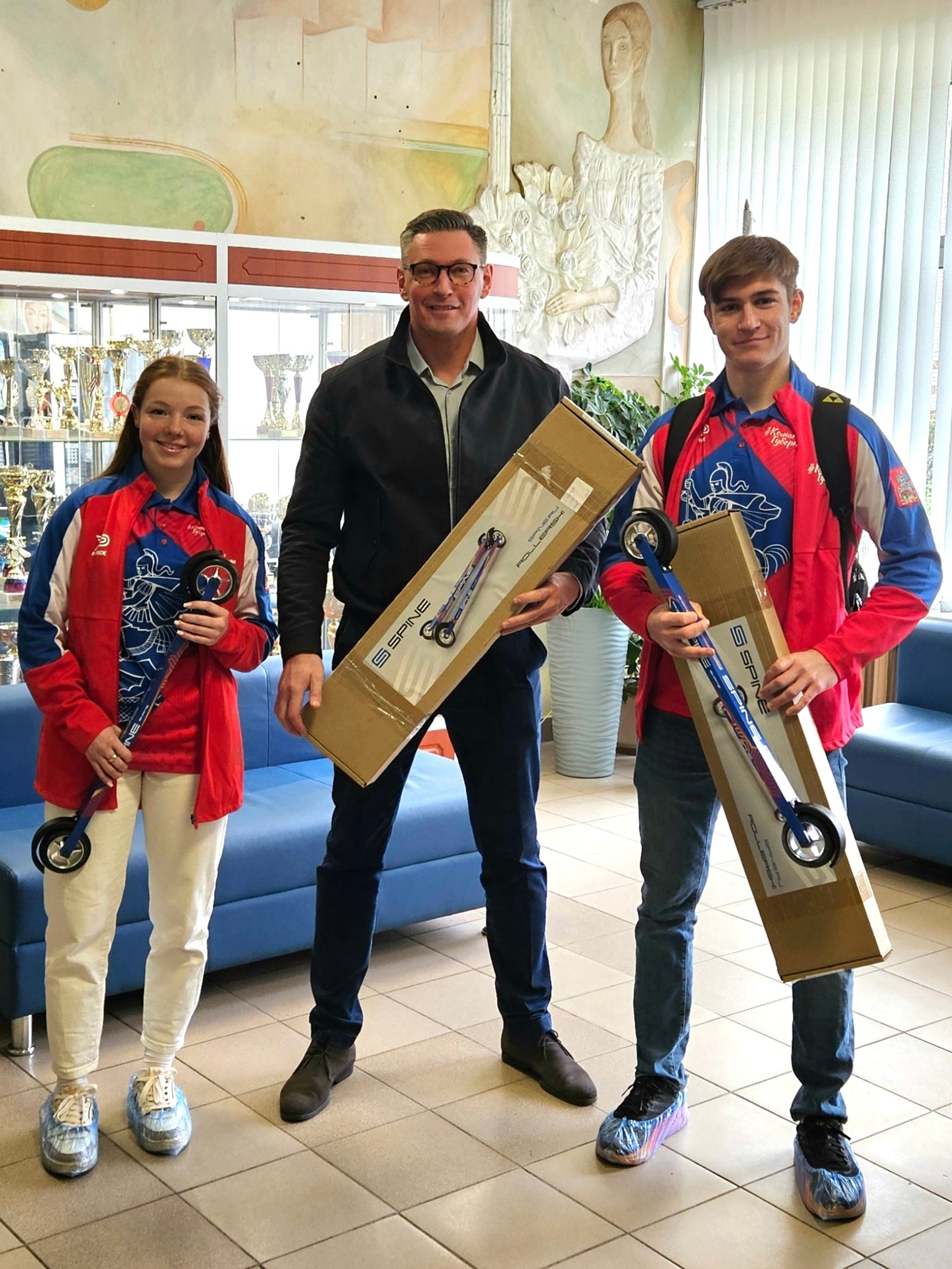 «Зима закончилась, но это не значит, что и лыжники заканчивают свои тренировки. Лыжный спорт богат своим разнообразием и методами тренировок. Один из способов тренировок в период, когда нет снега - лыжероллеры. Этот спортивный снаряд лучше всего имитирует лыжный ход и так же в процессе тренировок позволяет улучшать свои физические показатели. Вручил данный спортинвентарь нашим чемпионам, мастерам спорта Артему Баркову и Юлии Меньшиковой. Они тренируются под руководством тренера-преподавателя Алексея Илюхина, успешно выступают на межрегиональных и всероссийских соревнованиях, показывая достойные результаты», - сказал Троицкий.