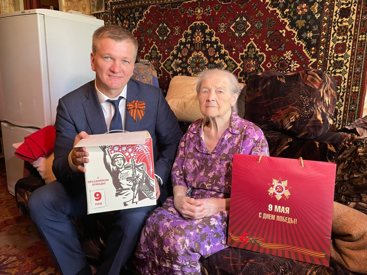 С наступающим Днём Победы поздравил Марию Ивановну Бодрову, Клавдию Андреевну Тюленевую и Вадима Петровича Мальцева.