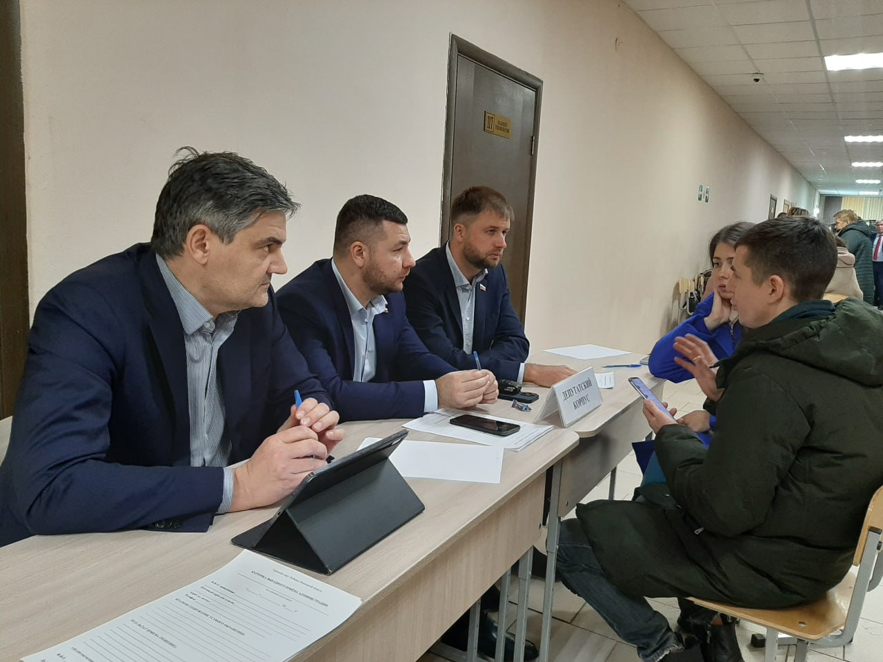 Депутаты городского округа Люберцы Дмитрий Лактионов, Вячеслав Губин и Леонид Слонимский в рамках партпроекта «Жители МКД» приняли участие во встрече с жителями в формате выездной администрации.