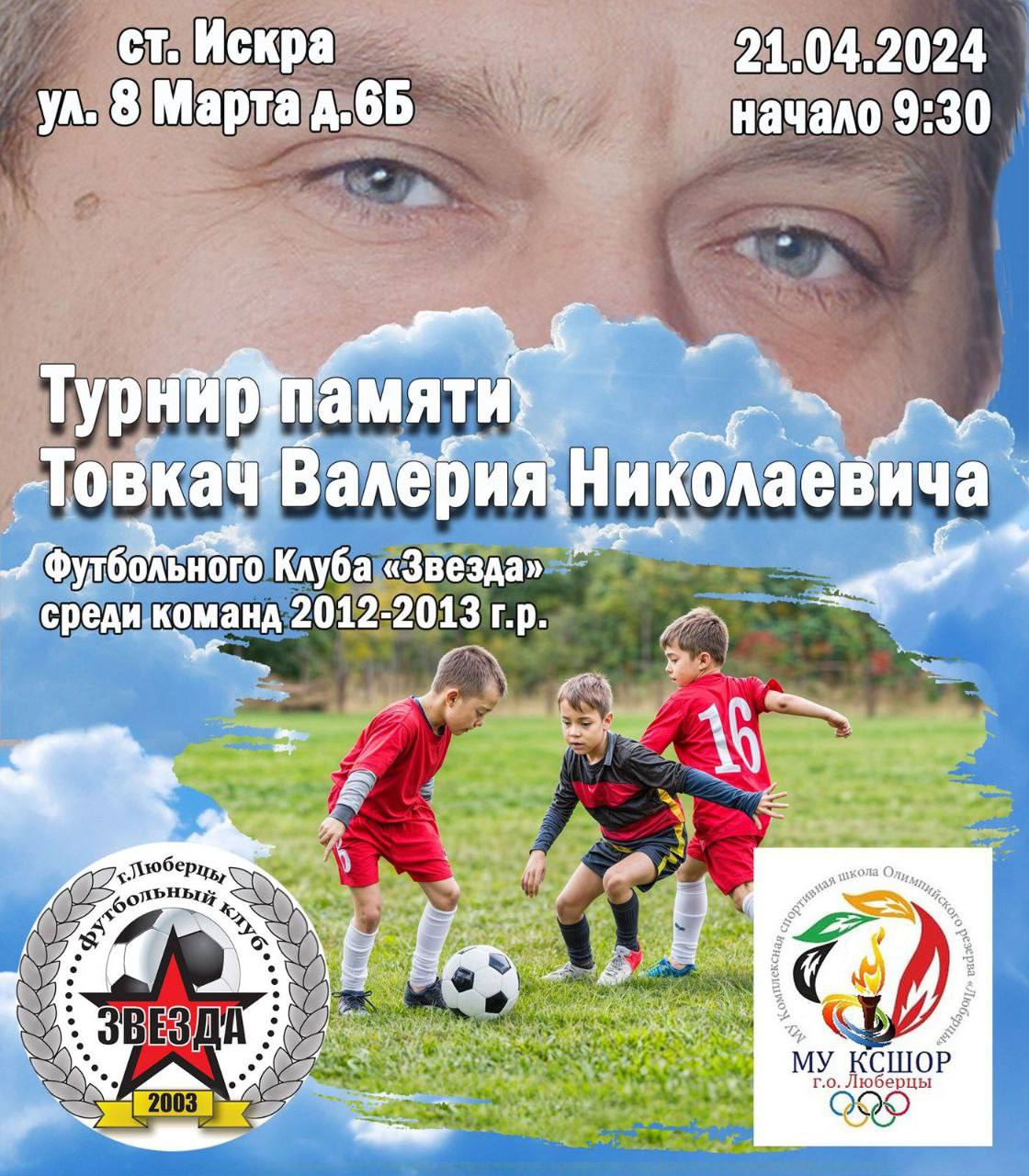 «В воскресенье в Люберцах состоится турнир по футболу памяти тренера Валерия Николаевича Товкача. С его именем связано развитие детского футбола в округе. Он занимал должность директора футбольной спортивной школы «Звезда», один из её выпускников - Павел Яковлев - играет за команды Российской Премьер-Лиги», - рассказал Владимир Волков.