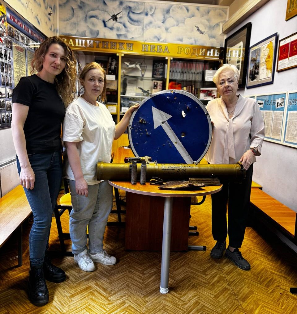 «В музей «Сыны Отечества» люберецкой Кадетской школы от фонда «Помощь братьям» передали  новые артефакты из зоны проведения СВО. Это противотанковый ракетный комплекс, расстрелянный дорожный знак из-под Авдеевки, осколок фугасной бомбы, 30 мм гильза от БТР из Азовсталь», - отметил Волков.