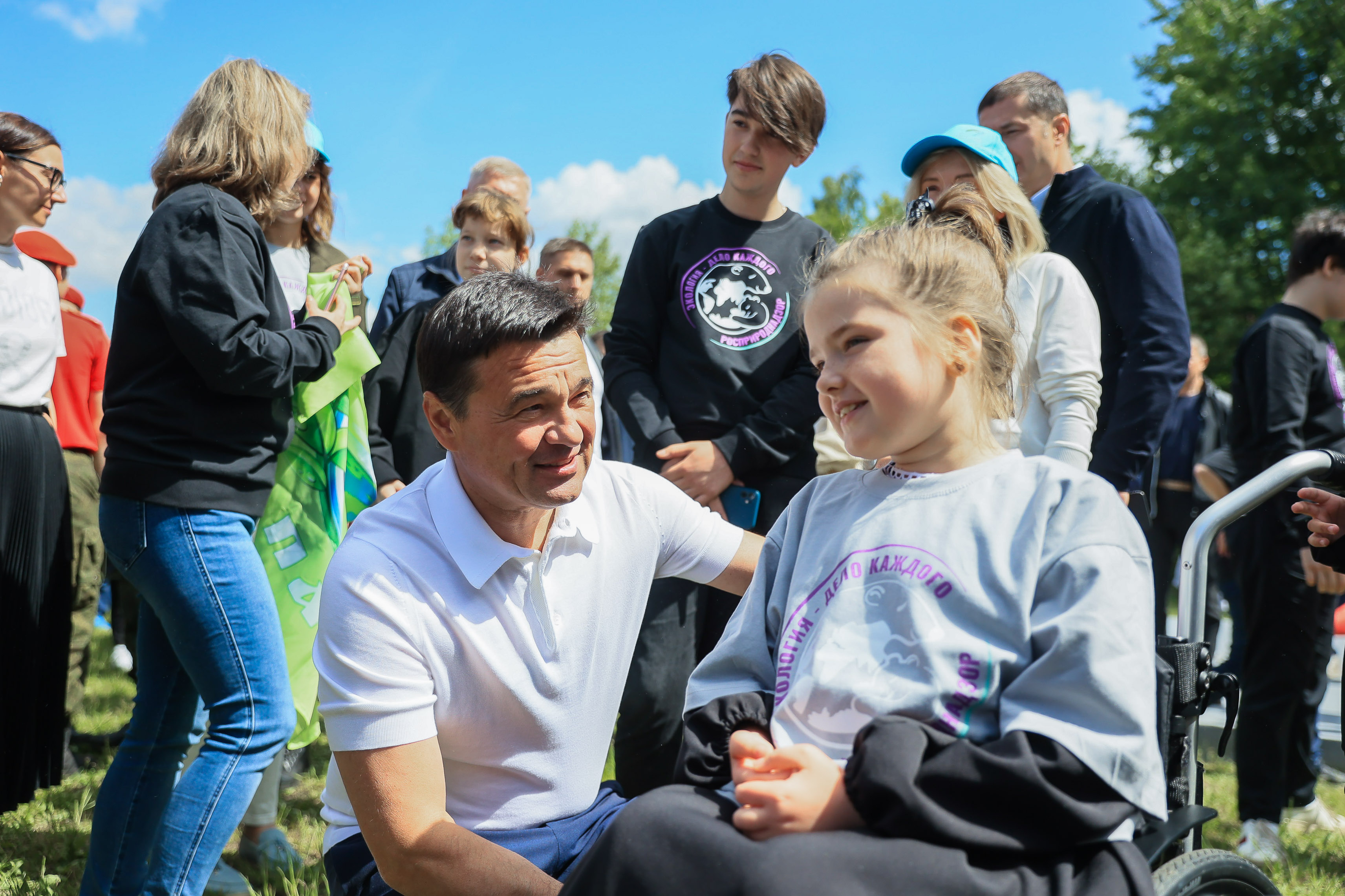 Губернатор и глава Росприроднадзора пообщались также с участниками  фестиваля в неформальной обстановке. Ребята, в частности, спросили, какими видами спорта увлекается Андрей Воробьев, что нужно сделать для того, чтобы повсюду было чисто.