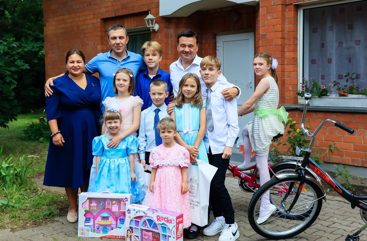 Татьяна и Дмитрий воспитывают 9 братьев и сестер, младшему – 3 года, старшему – 15, кроме того, у супругов есть сын и дочь, которым по 2 годика, сообщила пресс-служба губернатора и правительства МО.