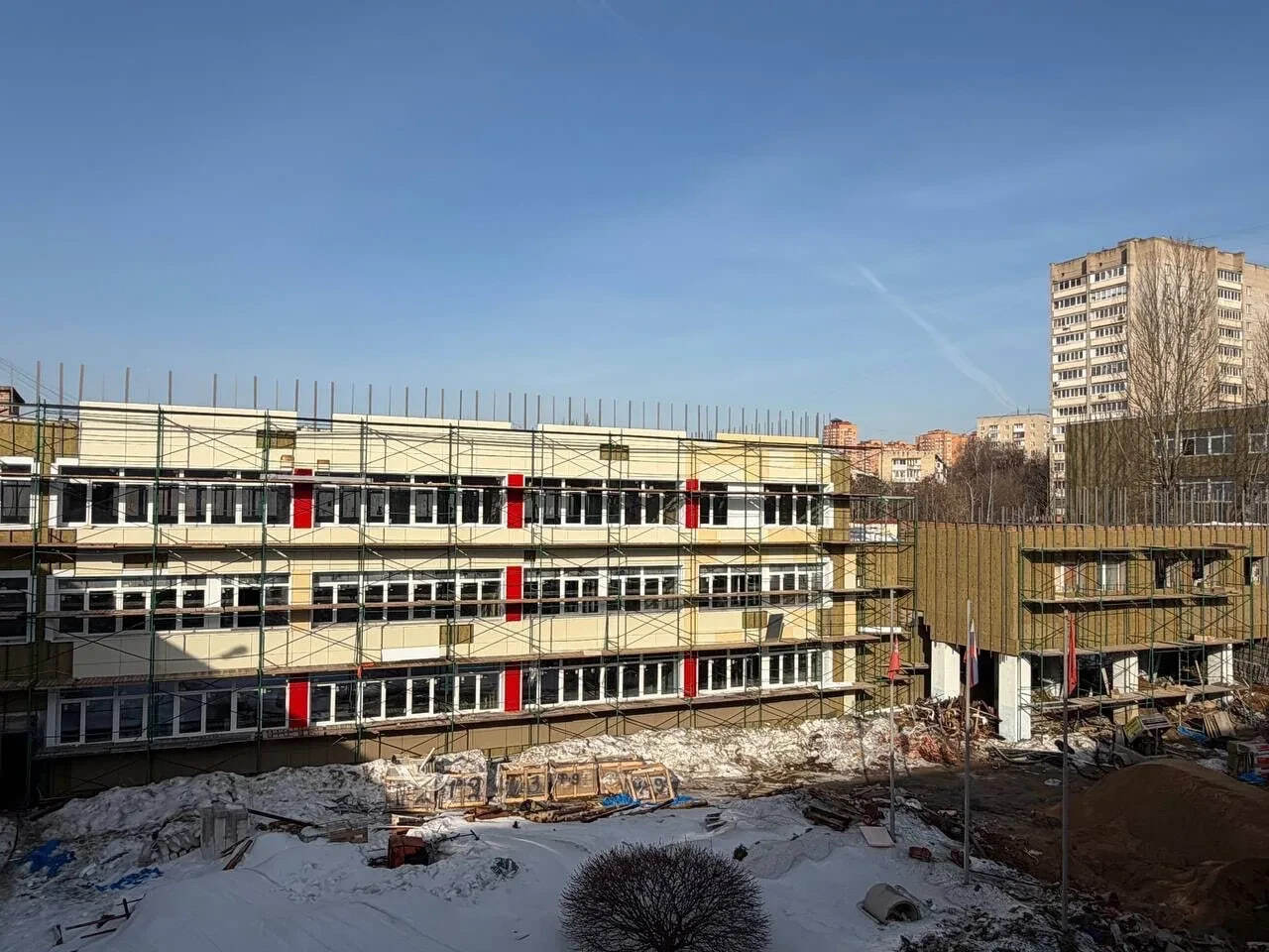 «В настоящее время выполняются устройство кровли, фасадные работы, замена оконных блоков, монтаж инженерных сетей, устройство каркасных перегородок и напольной стяжки, черновая отделка помещений. Работы идут в соответствии с графиком», — отмечается в сообщении.