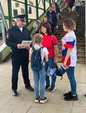 Комиссией по делам несовершеннолетних и защите их прав городского округа Люберцы совместно с сотрудниками Линейного управления МВД России на ст. «Москва-Рязанская», люберецкими добровольцами в пятницу, 23 августа, в рамках акции «Безопасное детство», проводимой на территории Московской области в период с 1 мая по 31 сентября 2024 года, на железнодорожной станции «Люберцы-1» проведено мероприятие, направленное на профилактику и предупреждение гибели и травмирования среди несовершеннолетних на объектах железнодорожного транспорта.