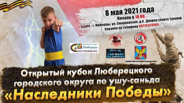 «Спорткомитет Люберец и клуб единоборств «Кобра» приглашают представителей всех направлений единоборств поучаствовать в открытом Кубке по ушу-саньда «Наследники Победы». Соревнования будут проводиться среди спортсменов 1981-2013 годов рождения в разных весовых категориях. Начало в 10.00», - говорится в сообщении.
