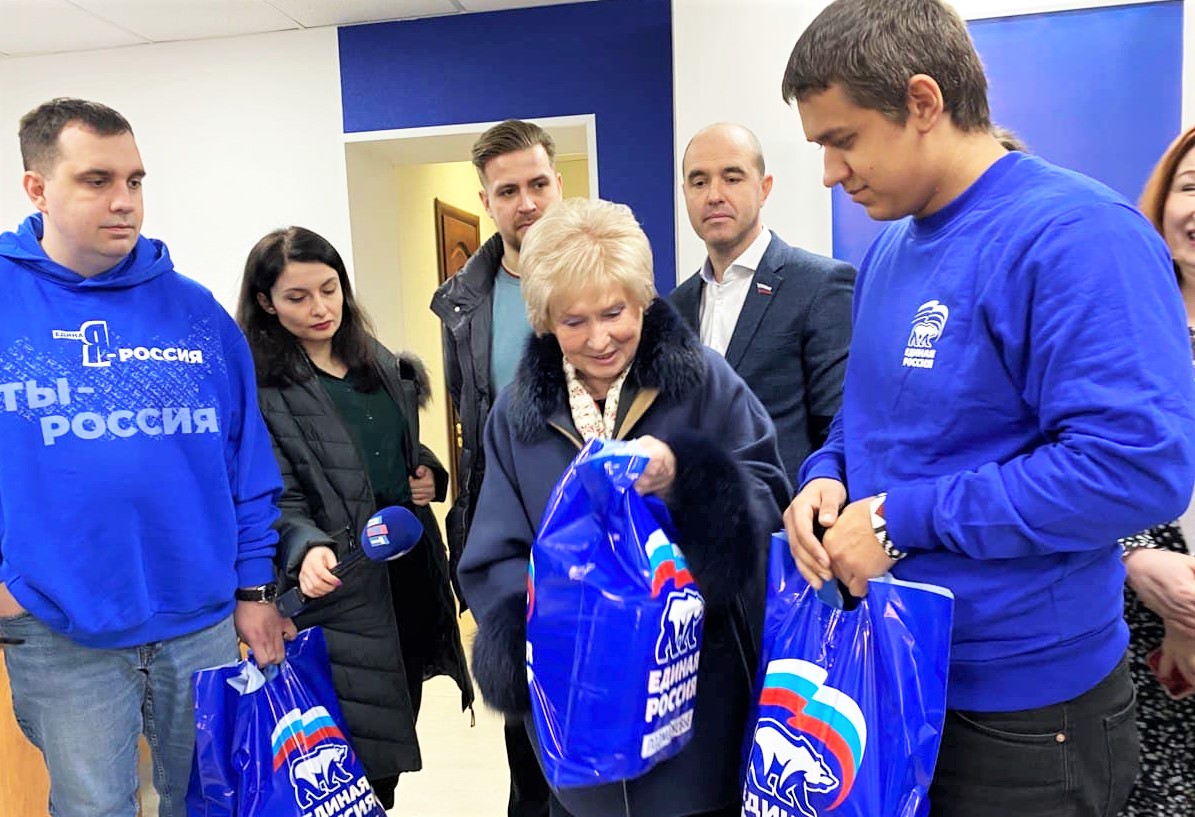 Пункт был открыт в конце февраля на базе местного отделения партии. Лидия Антонова передала чай и кофе, детское питание и сладости.