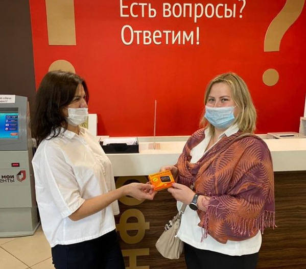 Девушка подписана на @tpassme и @mfc_mo в сети Instagram. Она приняла участие в викторине, ответив на пять вопросов на странице @mfc_mo, и выиграла приз. Торжественное вручение подарка состоялось 16 июня в отделе приема заявителей «Центральный» Люберец. Ей вручили транспондер «T-pass Premium» - гаджет для бесконтактной оплаты проезда.