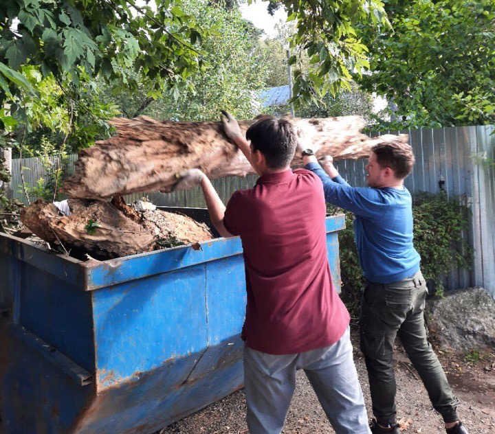 Люберецкие молодогвардейцы убрались на придомовой территории у жительницы поселка Малаховка Марины Михайловны Шмелевой.