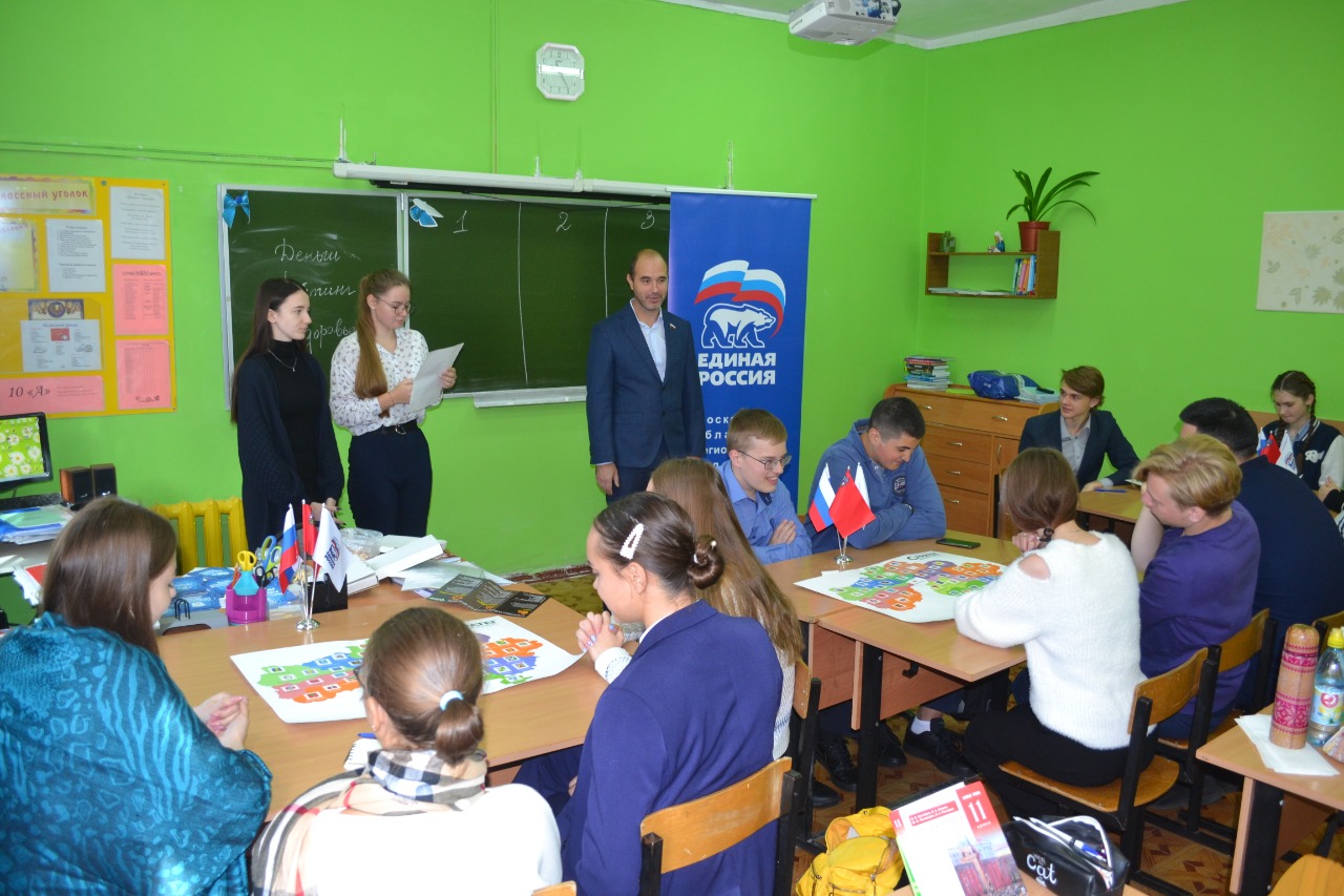 Старшеклассников поприветствовал руководитель фракции «Единая Россия» в Совете депутатов городского округа Люберцы, член регионального политсовета, руководитель МГЕР Александр Шлапак.
