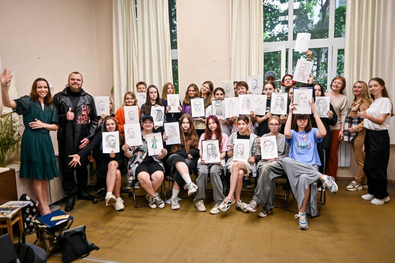 В рамках встречи музыканты провели для всех оздоровительную зарядку, зарядили ребят на позитив. Во время урока юные художники с натуры нарисовали Яну и Андрея. Сначала портреты, а затем в движении.