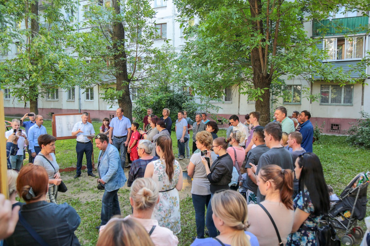 Во вторник, 4 июня, во дворе д.19 по ул. Космонавтов прошли общественные обсуждения, в рамках которых был представлен проект благоустройства этой дворовой территории.