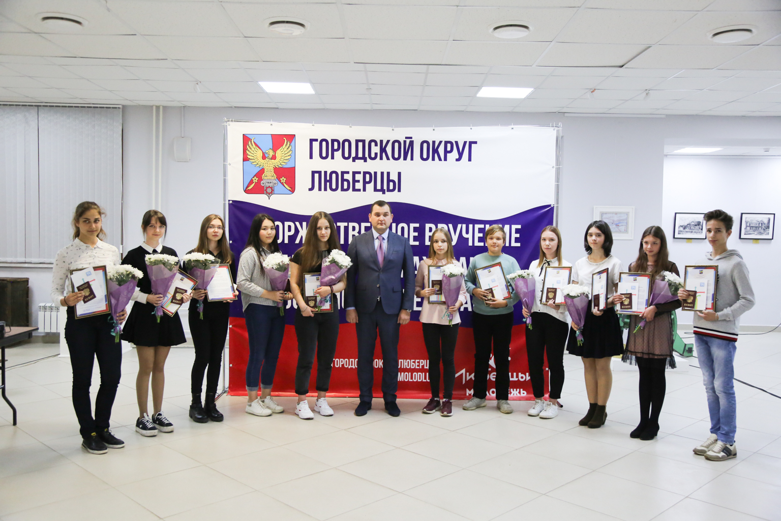 Торжественная церемония вручения паспортов гражданина Российской Федерации состоялась в Люберецкой Картинной галерее 15 октября, 11 юных жителей городского округа получили свой первый документ из рук заместителя главы администрации муниципалитета Михаила Криворучко.
