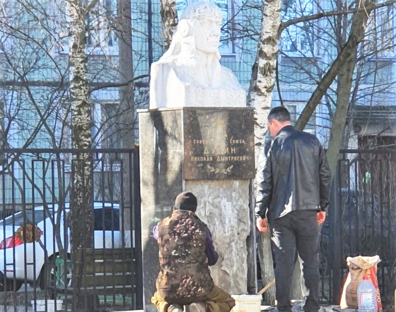 Партийцы помогли отремонтировать памятник Герою Советского Союза в Люберцах
