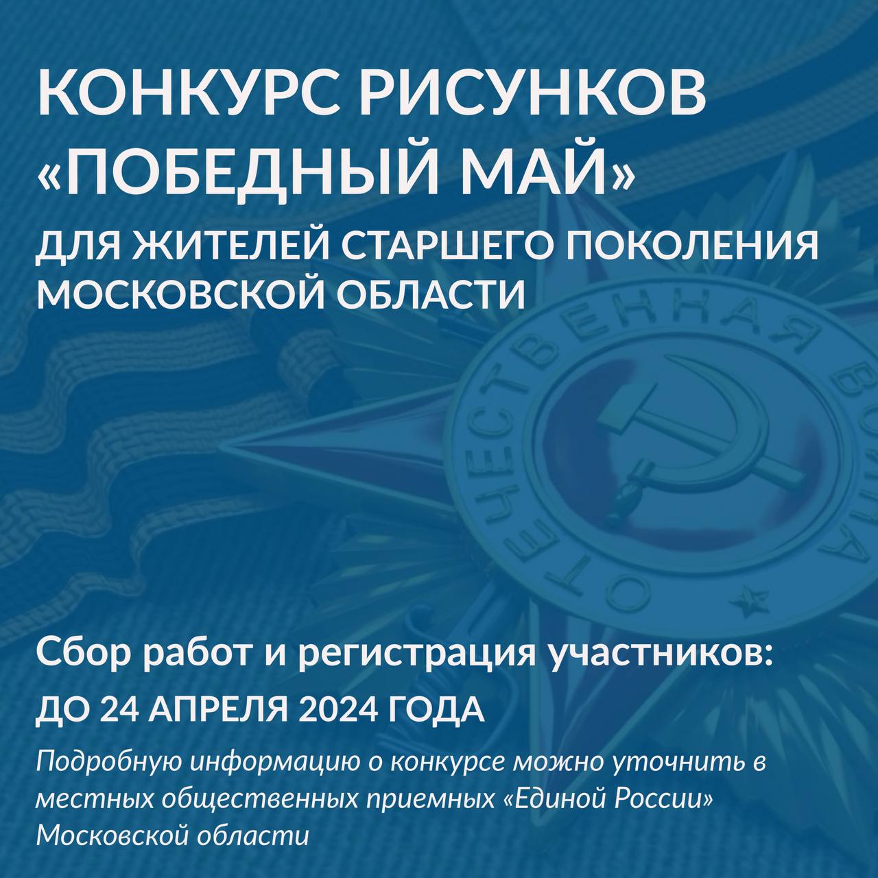 В городском округе Люберцы стартует конкурс рисунков для старшего поколения «Победный май», он организован общественными приемными партии «Единая Россия».
