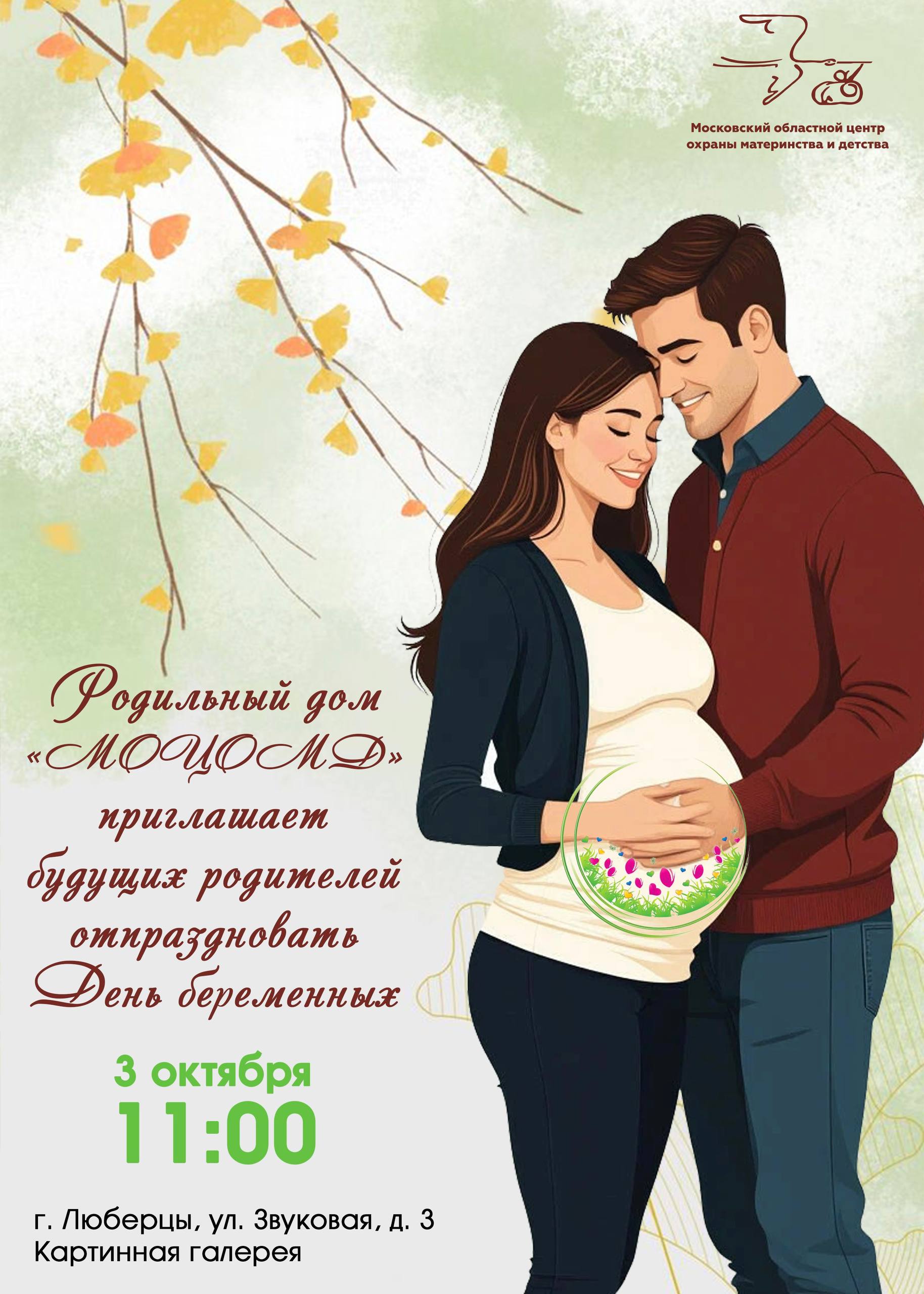 Родильный дом Московского областного центра охраны материнства и детства (МОЦОМД) приглашает будущих родителей на праздник «День беременных». Мероприятие состоится в пятницу, 3 октября, в Картинной галерее Люберец (ул. Звуковая, д. 3). Об этом сообщили в медицинском учреждении.